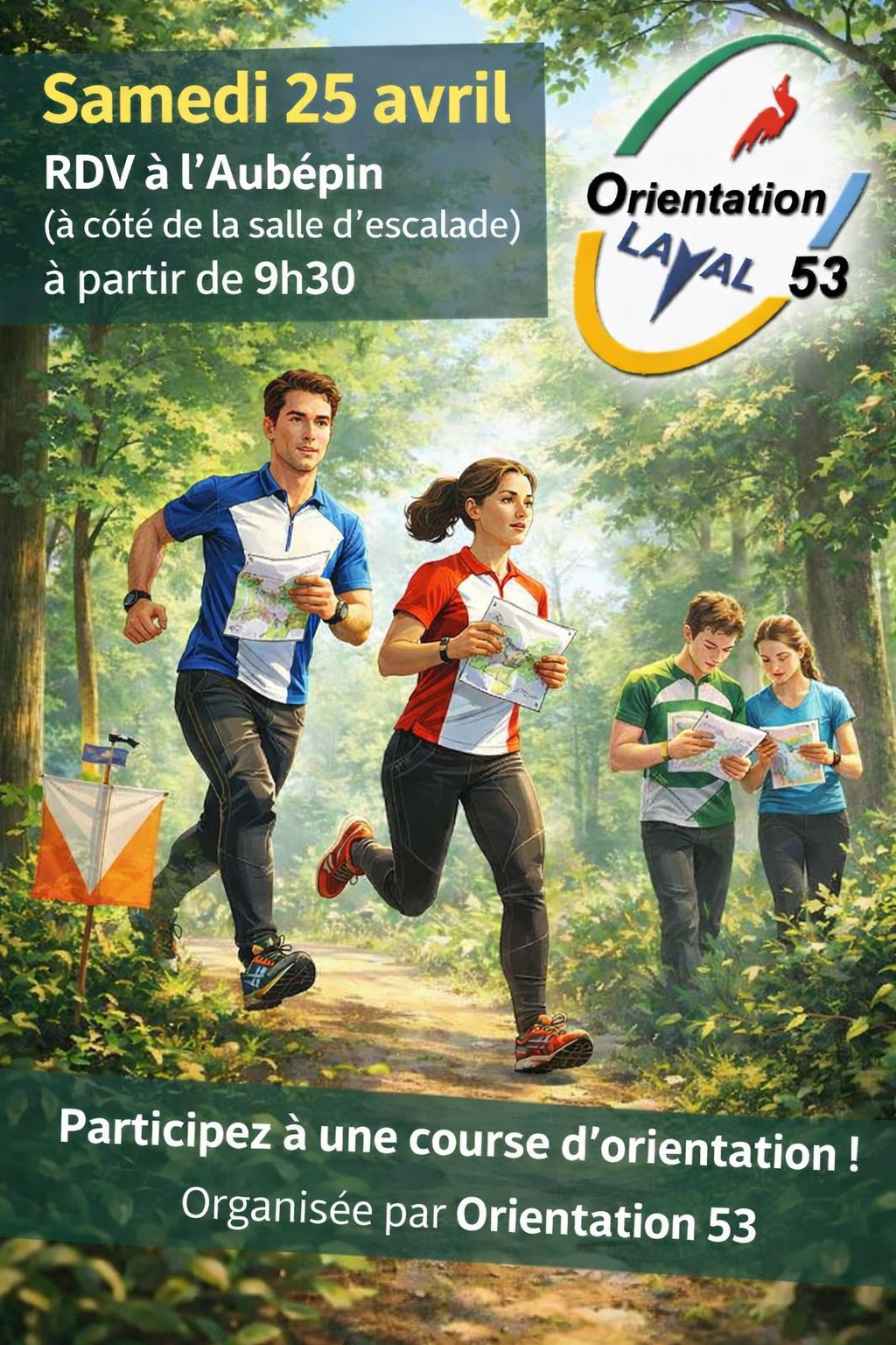 Orientation 53 organise son prochain entrainement, ouvert à tous, le 25 avril à partir de 9h30 à l'Aubépin (LAVAL) à côté de la salle d'escalade.